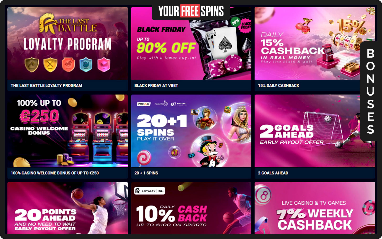 Let’s get to the part everyone loves—bonuses! Vbet rolls out the red carpet for new players with a 100% Casino Welcome Bonus of up to €250, which is a competitive offer in today’s market. But as someone who’s claimed more bonuses than I can count, I know the headline number isn’t the whole story. You’ll also find reload bonuses, cashback offers, and regular tournaments, making Vbet a rewarding place for both new and returning players. However, each promotion comes with its own set of terms, including wagering requirements, eligible games, and maximum win limits. It’s essential to read these carefully, as they can make a huge difference in your chances of cashing out a bonus.