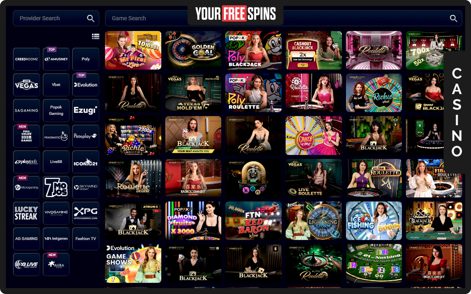 YourFreeSpins.com is an independent website that reviews online casinos and video slots. Gives you special offers of free spins, welcome bonuses and no deposit bonuses from online casinos for free of charge. However, gambling online is your responsibility and you must be 18 years of age or over.
